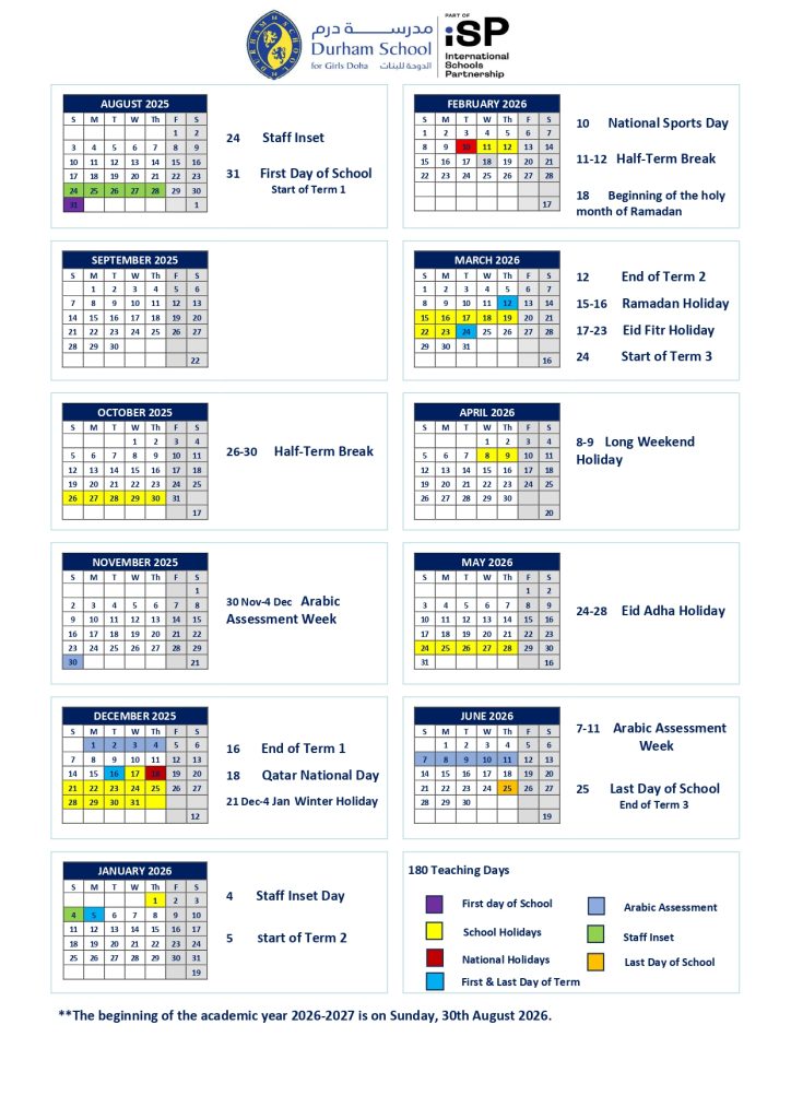 What We Believe Who We Are What We Do See Our School Join Us Menu What We Believe Who We Are What We Do See Our School Join Us School Calendar Durham School for Girls Doha aims to inspire a lifelong appetite for learning in a caring environment that will develop emotional, moral and spiritual strength for future leaders. Click here for Term Calendar Click here for NEW 2025/2026 Academic Calendar